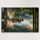 ROMPECABEZA GATO MANEJANDO BICICLETA EN EL BOSQUE. JIGSAW PUZZLE