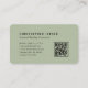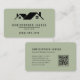 Spread the word about your roofing business with this simple sage green and black business card featuring rounded corners. A black roof logo and black text appear on a sage green background. Add your business name, contact information and other details. A QR code on the back takes customers and clients to your website.