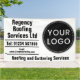 Promote your Roofing and Guttering business with a bold Banner and your logo. Make it personal by adding your company name, phone number, and email address. Outdoor banner for a Roof Repairs or Guttering business.