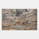 Rectangular souvenir photo sticker of the orange clay tile roofs in mediaeval architecture seen from above from the Torre del Mangia at the Piazza del Campo in the old historic city centre of Siena, a town in Tuscany, italy