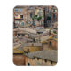 Vertical souvenir photo magnet of the orange clay tile roofs in mediaeval architecture seen from above from the Torre del Mangia at the Piazza del Campo in the old historic city centre of Siena, a town in Tuscany, Italy.