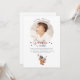 Celebrate your little one's 1st Birthday with this design featuring a sweet watercolour bear with a balloon and baseball accessories. It also features 'Our little rookie is one' typography - perfect for your Baseball First Birthday party! You can edit the initial on the baseball cap to customise it for your child, the number in the balloon and add your child's name and age at the bottom. You can also add your own photo to this design.