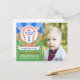 This adorable baseball theme one year old birthday party invitation postcard is perfect for the littlest baseball fan in the family! Start the celebration for your little rookie with this fun card. Simply customise the name and party information, add a photo, and it's game on - You can even customise the colours to match your favourite team colours!