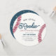 This cute and retro "Little Rookie" boy's birthday circle invitation features a baseball. The reverse side features a navy blue background with faux gold star patterns. Personalise it for your needs. You can find matching products at my store.