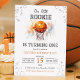Our little rookie is turning one! Celebrate your baby boy’s big day with this editable basketball first birthday invitation. Featuring a watercolor basketball and playful phrase "Our little Rookie is turning One", this sports themed invite is perfect for a rookie of the year party, basketball birthday, or boy’s 1st birthday celebration.
