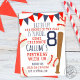 A baseball themed birthday party invite featuring vintage style baseball prints in a red, blue, and white colour scheme. Celebrate your little sluggers big day with this customised baseball party invitation!