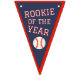 Celebrate your little sluggers special day with this rookie of the year baseball themed bunting banner! Features a vintage baseball print in red, blue, and pinstripe colour scheme.