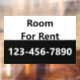 This sign is black and white. You can edit the text to meet your needs. You can add your custom message (shown: Room For Rent) and phone number. The top is white with black text. The bottom is black with white text for your phone number or custom text. All text can be edited or deleted.