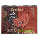 On each month of this calendar is an original watercolor painting of roosters by Anne Ormsby.