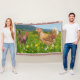 This is first of three versions of a lovely colourful throw blanket will bring a breath of the countryside into your home. It shows a jaunty Cockerel ardently running towards a chicken in a Spring flower meadow that I spotted in France and sketched. Perfect for brightening any room.