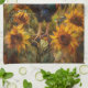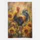 Rooster and Sunflowers Oil Painting Tea Towel