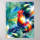 Transform your living or office space with our captivating posters, each featuring an exclusive watercolor design of a spirited rooster amidst lush tropical palms and leaves. The vibrant reds, blues, and greens of these artworks bring a burst of energy and colour to any room.