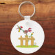 A rooster sitting on a fence crowing its lungs out. This design looks really effective on this Keychain