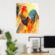 Rise and shine...the day begins with the heralding crow of the rooster! Classic theme for this colourful, decorative artwork. Sunshine colours with layered chalk and acrylic brushstrokes arranged with subtle patterns and textures form this rooster announcing a new day. A complex arrangement to delight the eye and add drama to any decor.