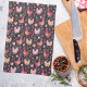 Rooster hens farmhouse black red pink tea towel