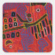 Kuna Indian design inspired by mola textile of a fantasy rooster scaling a fish with a machete.