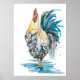 Rooster Splash II by Melissa Wang. Features a watercolor rooster in primarily blue and grey colours.