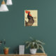 Art Nouveau Theophile Steinlen Rooster - Cocorico cover 1899 - This wonderful art nouveau French Rooster poster is titled, Cocorico, or Cockerel Rooster. This beautiful black rooster has a bright red comb on top of its head and red wattles under its chin. The Cockerel Rooster is crowing loudly and happily. Around the edges is the Art Nouveau lettering for this French poster, a large Cocorico is drawn, underneath of which include several names and "Paris."