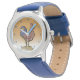 This beautiful cartoon watch shows a proud rooster waiting for the sun to rise. Available on a variety of stylish watches!