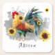 Rooster with Sunflowers Personalised Square Paper Coaster