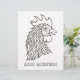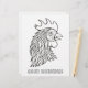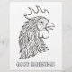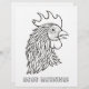 Colouring book page. Line art illustration of rooster's head. Custom text.