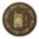 Brown drawer pull with a pretty, ornate round framing surrounding a root beer float.Cute, old fashioned looking and charming.