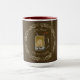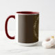Brown mug with a pretty, ornate round framing surrounding a root beer float. It says " You float my ice cream". A play on words of the phrase " You float my boat". Cute, old fashioned looking and charming. Change the mug style and accent colours to suit you.