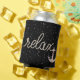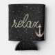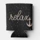 Relax text in nautical rope design and anchor on black background with water droplet condensation pattern.