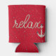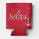 Relax text in nautical rope design and anchor on red background with water droplet condensation pattern.