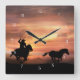 Roping Cowboy and Wild Horse Square Wall Clock