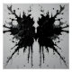This high-contrast macro photograph captures a perfect, symmetrical inkblot reminiscent of a Rorschach test on a textured white watercolor paper. The wet black ink glistens under a single, harsh light, creating deep velvety blacks with subtle gradients where it soaks into the thick paper. The centered, mirror-image design invites interpretation and symbolizes subconscious perception, ambiguity, and psychological exploration. The textured paper adds a tactile dimension, emphasizing the interplay between ink and surface, while the stark lighting highlights the intricate details and reflective sheen of the wet ink.