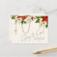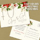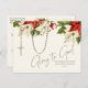 Featuring a beautiful and unique Merry Christmas postcard with the a gold rosary and accents of red poinsettias with a scripture verse.