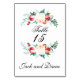 Rose and Berry Watercolor Stems Wedding Table Card. These designs include watercolor roses with interesting foliage and rich red berries. The colours in this suite include creamy-peachy roses, red roses and berries and are accented with teal and green foliage.