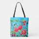 Rose and Cherry Blossom Bright Blue Tote Bag