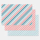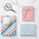 A classic candy cane stripe wrapping paper featuring a rose pink and teal blue colour scheme with white candy cane stripe.