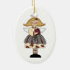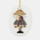 Adorable oval ornament with lovely country primitive artwork of a angel girl holding a bouquet of roses. Great Christmas tree ornament everyone will enjoy. Start a collection of all our special little winged girl ornaments.