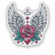Neotraditional style tattoo. Beautiful angel wings with roses and jewels.