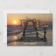 A romantic wedding reception only, post or happily ever after wedding invitation featuring a sunset at the ocean with a rose arbor and string lights.