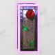 Stained glass Rose panel designed and created by Jessica Joy Myers reproduced front and back on a card.