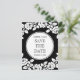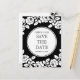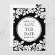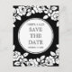 Rose border black white wedding Save the Date postcard. A beautiful rose border along with a white circle that holds your wording adorns this lovely postcard.