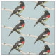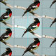 This animal fabric design features the male Rose-breasted Grosbeak, a striking bird with a brilliant rose breast contrasted by black and white feathers and a strong blocky beak. He is a songbird with a wonderful melody. The female is brown and white. They breed in cool temperate North America, migrating to tropical America in winter. He is set on a pale blue background. You can easily customise the background colour to suit your special project.