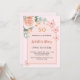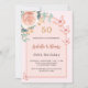 A blush pink background with a rose gold and peach coloured arch. Decorated with a rose gold and blush pink floral, rose flower, green watercolored eucalyptus greenery and butterflies. Personalise and add your name and party details.