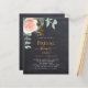 Chalkboard background. Decorated with a rose gold and blush pink floral, rose flower and green watercolored eucalyptus leaves, sprigs, greenery and a faux gold sprig. Personalise and add the name of the bride to be and party details. White and golden coloured text.