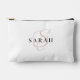 This cute personalized bridesmaid name cosmetic pouch features personalized bridesmaid's name, calligraphy monogram in light pink color, and custom message at the back side of the pouch. Change background and fonts colors easily if you like.