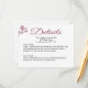 This Charming Details wedding card is part of the Rose Delight Wedding Invitation Set. This Details card features a vintage burgundy rose pattern highlighted against a creamy pink blush background. The back of the card features a matching burgundy rose graphic. You can customise this card with any details you want to convey to your guests. The rose on the back can be removed if you need more space.