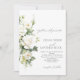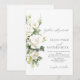 Modern wedding flower invitations white pastel roses and modern minimalist calligraphy. Classy and elegant, simple and modern invitation.