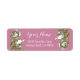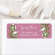 Custom return address labels with script and block letters in white and elegant vintage rose etching in white and faux golds on a dusty pink background.