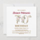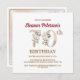 Organise the perfect 70th birthday celebration with this elegant rose floral monogram E design featured on the reverse side for birthday girls’ names starting with the letter E. Elegant floral numerals are used within the invitation to accentuate the celebratory age.