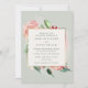 Beautiful wedding invitations for the modern couple with a romantic watercolor floral bouquet on green paper design. Faux gold foil square border at the centre of the card holds your wedding details in a modern block font in a coordinating dark green ink. The reverse side of the invitation is a coordinating green paper design.
