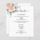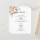 A modern, elegant wedding details/program/timeline. A white background, decorated with a rose gold, blush watercolored rose and eucalyptus greenery. Personalise and add your names and wedding details. Black coloured letters.